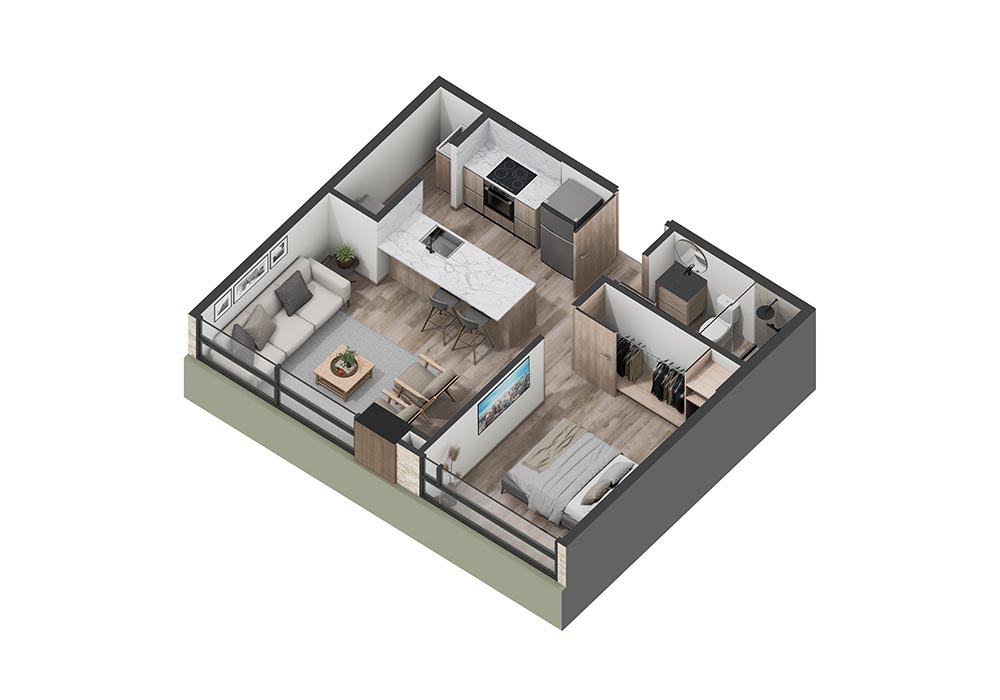 1 Alcoba | 1 Baño completo | Sala comedor | Cocina | Zona de Ropas